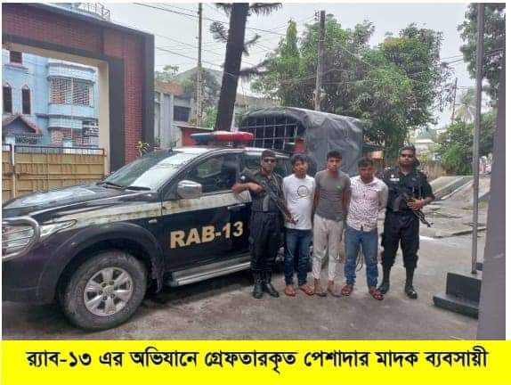 র্যাব-১৩, ক্রাইম প্রিভেনশন কোম্পানী-২, নীলফামারীর একটি আভিযানিক দল সুনির্দিষ্ট তথ্য ও গোপন সংবাদের ভিত্তিতে নীলফামারী জেলার জলঢাকা থানাধীন শেখমারী ইউনিয়নের অন্তর্গত মনিগঞ্জ গ্রামস্থ ধৃত আসামী মোঃ জিয়ারুল হক এর বসতবাড়ীর পূর্ব দুয়ারী আধা পাঁকা বসত ঘরের ভেতর অদ্য ৩০ মে ২০২৪ খ্রিঃ সকাল ০৬.৩০ ঘটিকার সময় অভিযান পরিচালনা করে ৮৪২ (আটশত বিয়াল্লিশ) বোতল অবৈধ মাদকদ্রব্য ফেন্সিডিলসহ ০৩ জন শীর্ষ মাদক ব্যবসায়ী ১। মোঃ হাসানুর রহমান (২১), পিতা-মফেল উদ্দিন, ২। মোঃ জিয়ারুল হক (৩৩), পিতা-মফেল উদ্দিন, উভয় সাং-মনিগঞ্জ, থানা-জলঢাকা, জেলা-নীলফামারী, ৩। মোঃ আব্দুল মালেক (২০), পিতা-মোঃ ছবিদুল ইসলাম, সাং-শৈলমারী, থানা-জলঢাকা, জেলা-নীলফামারী দের গ্রেফতার করতে সক্ষম হয়।