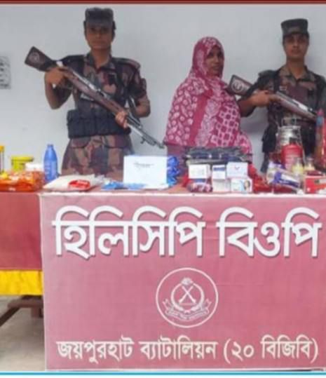 আজ ৩ আগষ্ট ২০২৪ ইং তারিখ সকাল ১০ টায় ২০ বর্ডার গার্ড ব্যাটালিনের হিলি সিপি কোম্পানির টহল কমান্ডার নায়েব সুবেদার ওয়াসিম কুমার মার্কার, ল্যান্স নায়েক মোঃ দলিলুর রহমান সিপাহী সৈকত রায়ের নেতৃত্বে হিলি আই সিপি গেটের ২৮৫/১১ এস সিমান্ত পিলার হতে ১০ গজ বাংলাদেশ অভ্যন্তরে ভারত থেকে আসার পথে এক নারী পাসপোর্ট যাত্রীর ব্যাগ তল্লাশি চালিয়ে ১৭৭০ পিস ইয়াবা, থ্রি পিস দুইটি, কম্বল একটি, কসমেটিক সামগ্রি ১৩ প্রকার , খাবার সামগ্রী পাঁচ প্রকার, কার্পেট ১ টি,জিরা ১ কেজি, চিনি ১ কেজি, ভারতীয় বাটি এক সেট, ভারতীয় নগদ ৬৫ রুপী ও নগদ বাংলাদেশী ১৯৬০ টাকা সহ মোছাঃ দিলরুবা বেগম (৪৯)