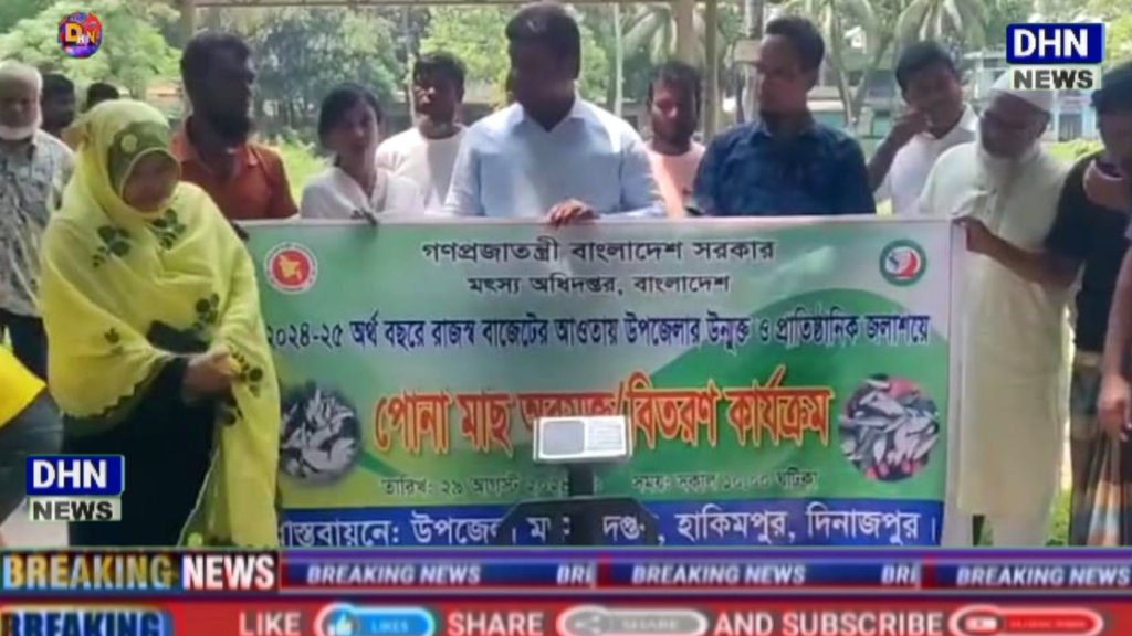 বৃহস্পতিবার ২৯ আগস্ট ২০২৪ ইং – সকাল ১০ ঘটিকায় দিনাজপুর জেলার হাকিমপুর উপজেলায় মৎস্য অধিদপ্তর কর্তৃক খোলা জলাশয় ও প্রাতিষ্ঠানিক ৬টি জলাশয়ে মোট ২৮৫. ৭১ কেজি পোনা মাছ অবমুক্ত ও বিতরন করা হয়।
