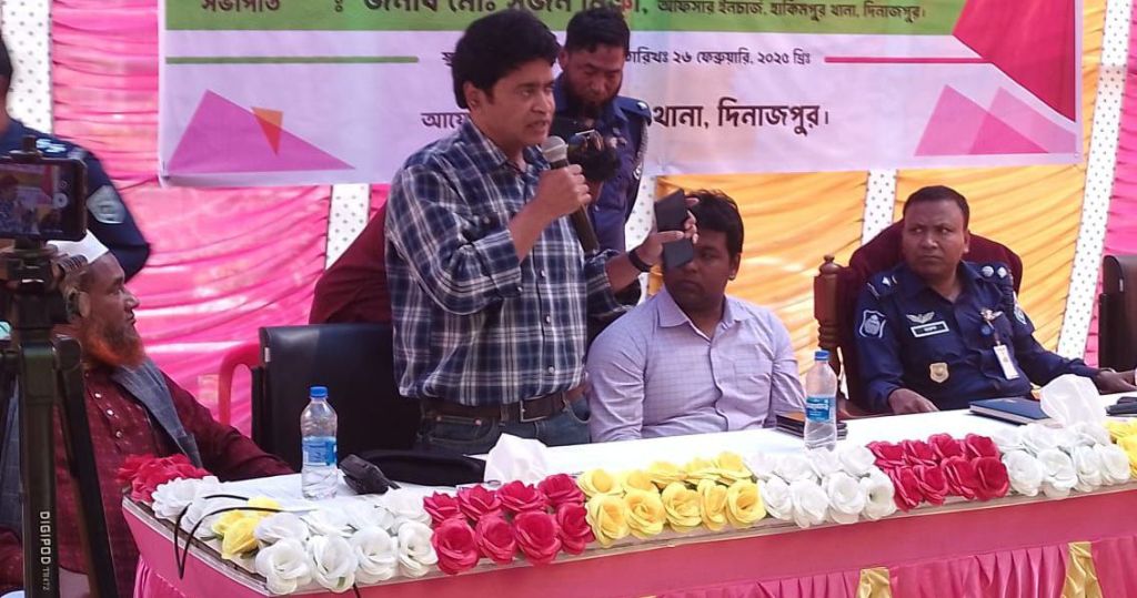 দিনাজপুর জেলার হাকিমপুর থানা চত্বরে হাকিমপুর থানার আয়োজনে হাকিমপুর থানার অফিসার ইনচার্জ মোঃ সুজন মিঞার সভাপতিত্বে